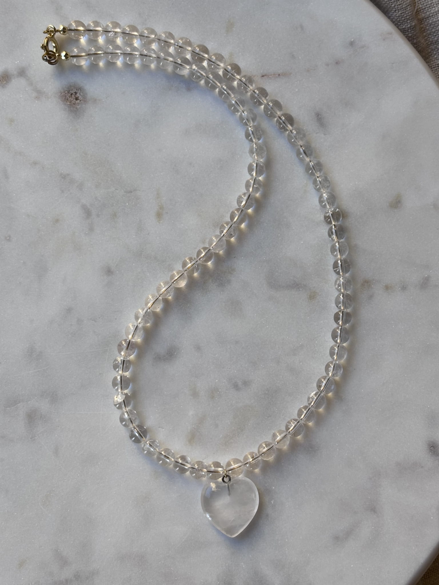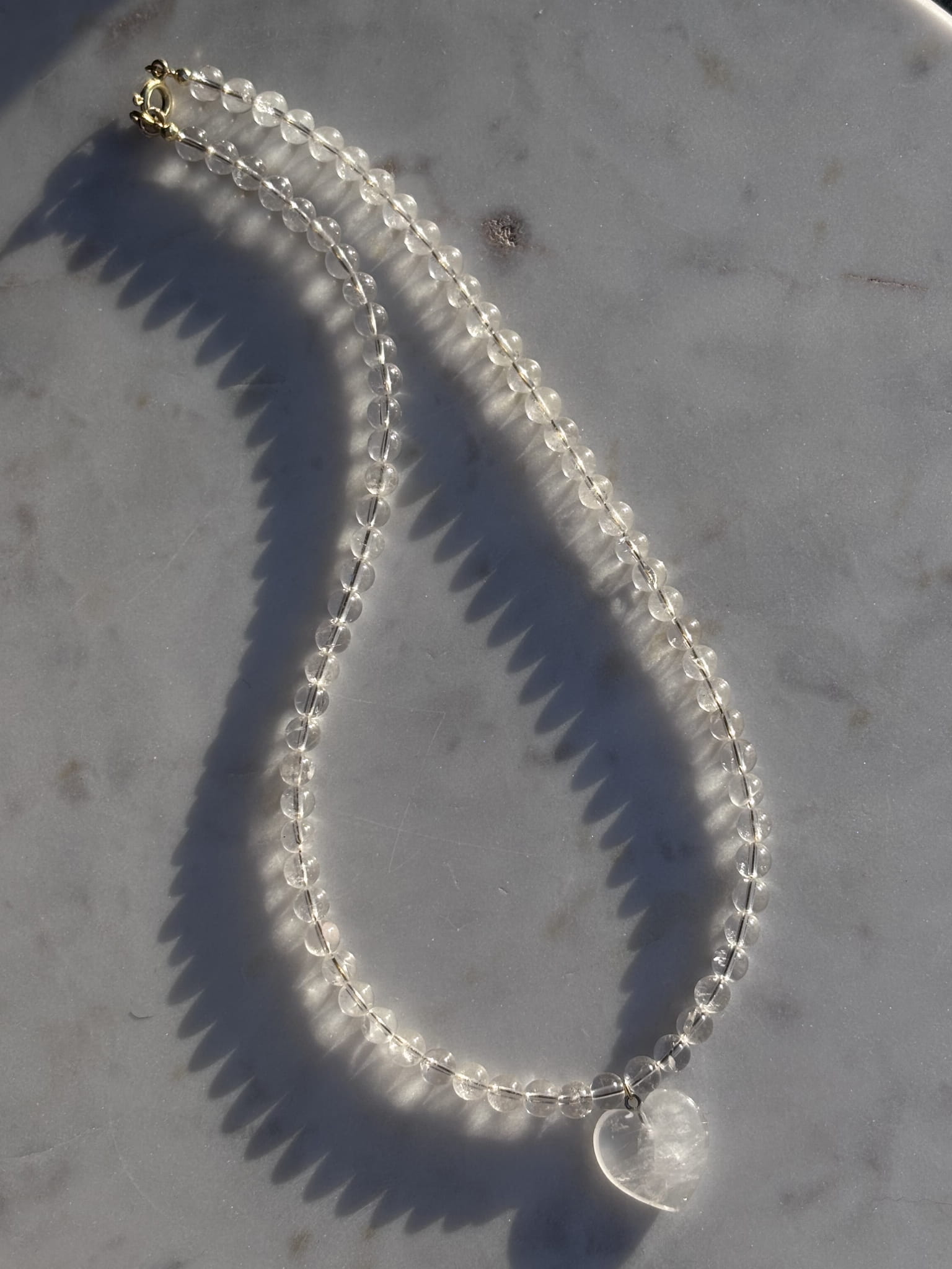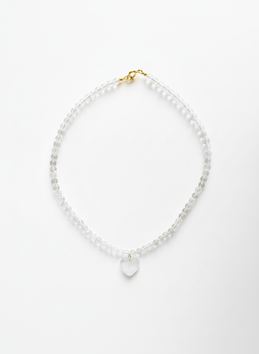 MATERIAŁ: Kryształ górski, serce - kryształ górski, srebro pokryte 24 karatowym złotem.